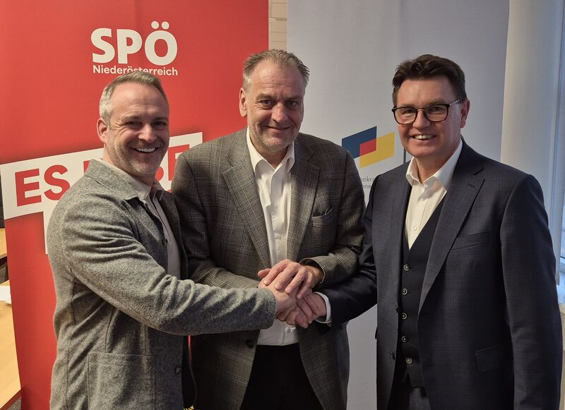 Bild: GB-Ktn. Präsident Günter Vallant, GVV Ö Vorsitzender Andreas Kollross, GVV B Präsident Erich Trummer